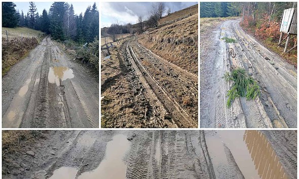FOTO ȘTIREA TA: Cum arată drumul spre casă pentru locuitorii unui sat din Apuseni. ”Este plin de șanțuri și noroi, un dezastru”