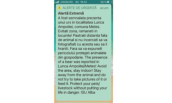 Prezența unui urs în zona localității Lunca Ampoiței din comuna Meteș a fost semnalată sâmbătă seara, în jurul orei 19:40. Autoritățile au transmis locuitorilor din zonă un mesaj RO-Alert. „A...