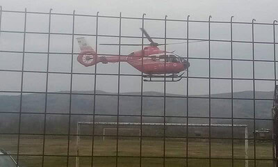 Un elicopter SMURD a aterizat joi, 31 martie, în jurul prânzului, pe terenul de fotbal...
