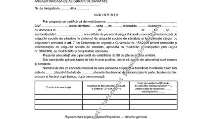 Modificări importante în modelul unic de certificat medical după ce documentul a fost actualizat printr-un Ordin comun al MS şi CNAS, publicat luni în Monitorul...