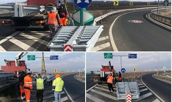FOTO: Atenuatori de impact, montați pe Autostrada A1, la nodurile rutiere de la Cunța, Lancrăm și Sebeș Vest