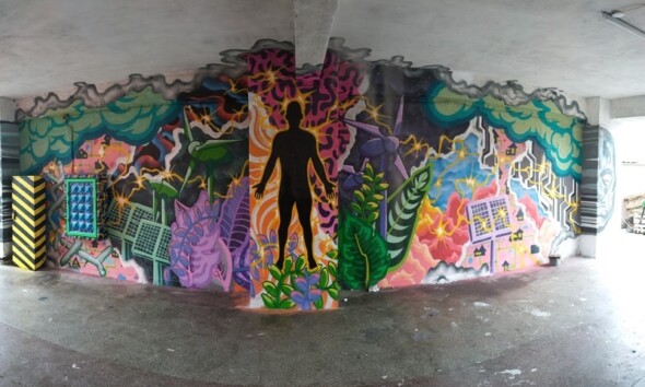 FOTO VIDEO: Desen graffiti de mari dimensiuni realizat la Alba Iulia: O simbioză între energie verde, natură și om