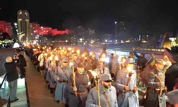 VIDEO: Reprezentație de Ziua Națională în Alba Iulia. ”Retragere cu torțe” în Cetatea Alba Carolina