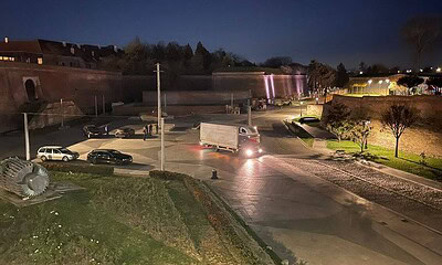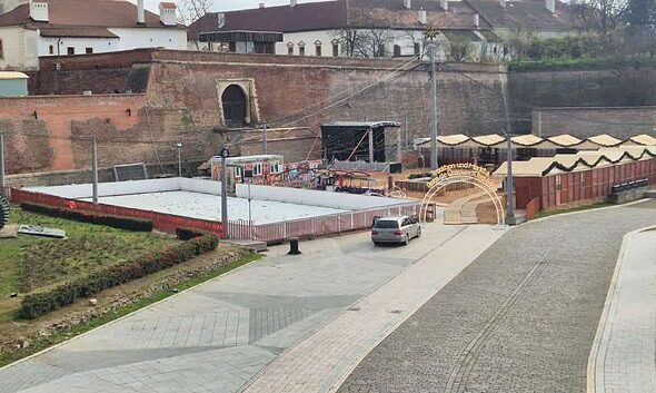 FOTO: Pregătiri pentru deschiderea Târgului de Crăciun la Alba Iulia. Au fost montate patinoarul, caruselul, scena și căsuțele