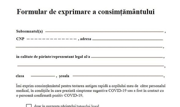 Noul formular prin care părinții își dau acordul pentru testarea elevilor a fost publicat. Cu câteva ore înainte de începerea semestrului al doilea, ministerele Sănătății și Educației au transmis duminică...