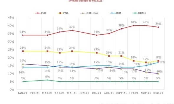 PSD este primul partid din România în preferințele cetățenilor cu drept de vot dar a pierdut un procent față de luna trecută, de la 40% la 39%, arată ultimul sondaj...