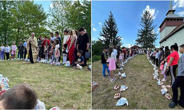 FOTO: „Pomana copiilor”, obicei străvechi păstrat la Presca Ampoiului. Tradiții în a doua zi de Paște, în comuna Meteș