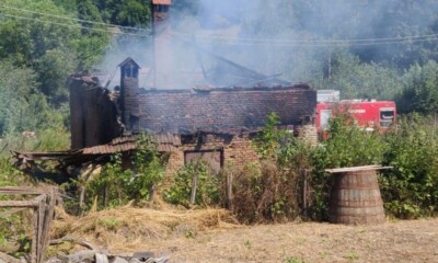 Acoperișul unei case din localitatea Almașu de Mijloc a fost cuprins de flăcări, sâmbătă, 7...