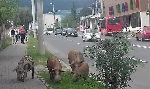 Porcii au ieșit din nou la "păscut" în Alba Iulia. Animalele, devenite deja un fel de mascotă o orașului, nu mai surprind pe nimeni. Oamenii s-au obișnuit deja cu imaginea...