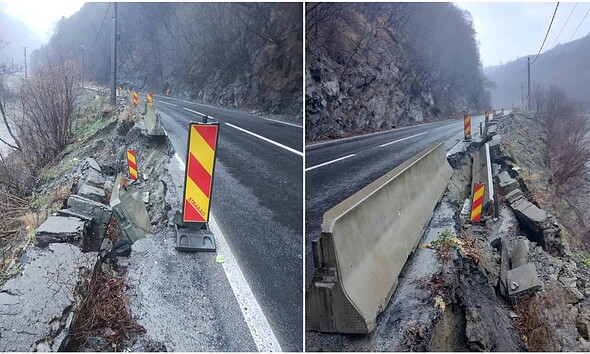 FOTO: O porțiune din DN 7 - Valea Oltului s-a surpat în județul Sibiu, din cauza ploilor abundente. Cum se va desfășura circulația