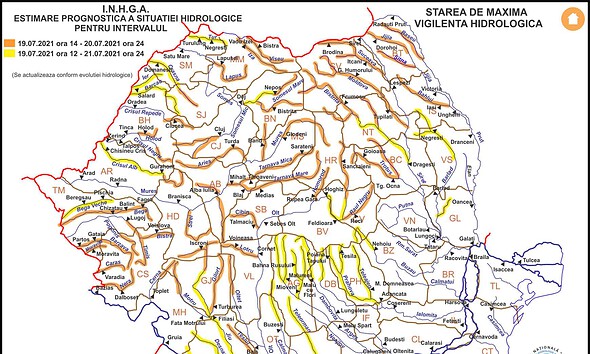 Hidrologii au emis avertizări Cod Galben și Cod Portocaliu de inundații, valabile până miercuri, 21 iulie, ora 24:00, pe râuri Alba și alte județe din țară. Potrivit hidrologilor, sunt vizate...