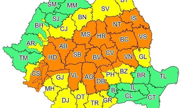 Meteorologii au emis vineri atenționări Cod Galben și Cod Portocaliu de vreme rea valabile în...