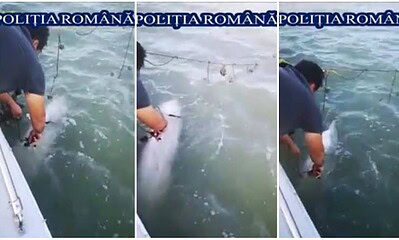 Poliţiştii Serviciului de Poliţie „Delta Dunării” au salvat și eliberat în mediul natural un morun...