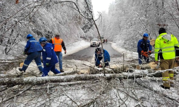 FOTO: Jumătate din orașul Abrud fără curent electric, după furtuna de duminică noapte. Mai mulți copaci sunt căzuți pe drum