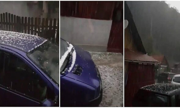VIDEO ȘTIREA TA: Ploaie cu gheață în zona Râul Mic, la Cugir, după o furtună puternică