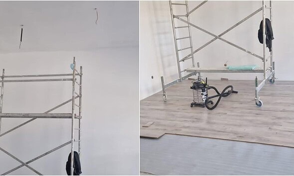 FOTO: Lucrări aproape de finalizare la una dintre clădirile Liceului Teoretic Teiuș. Se montează parchetul și se zugrăvește