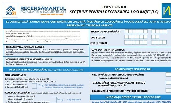 Ultima etapă a sesiunii de Recensământ 2022 este în curs de desfășurare. Persoanele care nu s-au autorecenzat online vor primi vizita recenzorilor, la domiciliul de reședință. Riscă amenzi dacă nu...