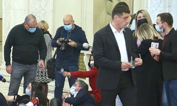 VIDEO: Protest în Parlament, împotriva coaliției PSD-PNL-UDMR. George Simion, pus și el la punct: ”Plecați, vă faceți de rușine”