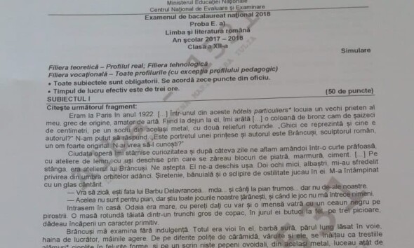 BACALAUREAT 2018: SUBIECTE şi BAREME la Limba şi literatura română, proba scrisă, publicate de Ministerul Educaţiei