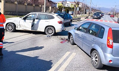 Cum s-a petrecut un accident rutier în Teiuș: Impact între două autoturisme, într-o intersecție. Explicațiile poliției