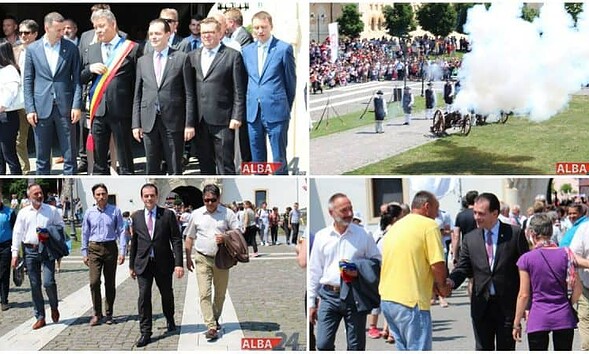 FOTO-VIDEO Special pentru Ludovic Orban: Ceremonialul schimbului de gardă cu salve de tun, în Cetatea Alba Carolina
