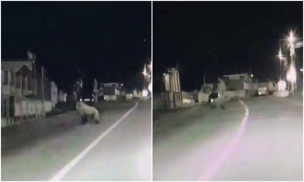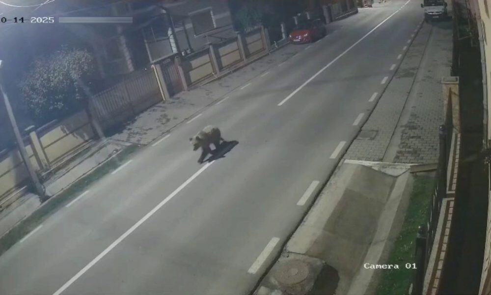 Un urs s-a plimbat minute în șir în noaptea de marți spre miercuri, pe strada principală din localitatea Sântimbru. Animalul a fost surprins de o cameră...