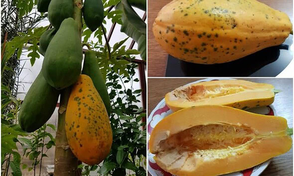 FOTO: Fructe uriașe de Papaya, produse la Alba Iulia în sera cu minuni de la Schit. Mica ”pădure tropicală” de lângă casă
