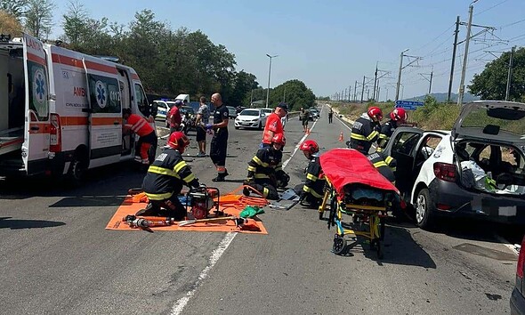 UPDATE FOTO: Accident rutier pe DN7, zona Vințu de Jos - Sibișeni. Trei persoane rănite după ce două mașini s-au lovit