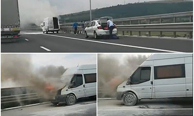 O autoutilitară a fost cuprinsă de flăcări pe autostrada A1, sensul Sebeș - Sibiu, înainte...