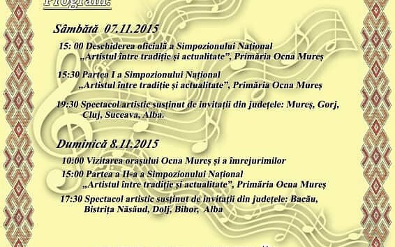 7 - 8 noiembrie: Profesori de la şcoli de arte din ţară se întâlnesc la Ocna Mureş. Simpozionul național „Artistul între tradiție și actualitate”. PROGRAM
