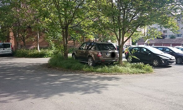FOTO | ȘTIREA TA pe ALBA24: Cu maşina de lux parcată pe spaţiul verde, la Alba Iulia. Un şofer şi-a lăsat bolidul la umbră, între doi copaci