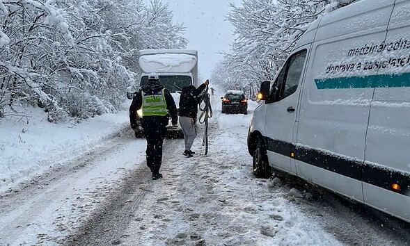 Cum a ajutat un jandarm din Alba, un șofer slovac care a ajuns cu o autoutilitară într-un șanț
