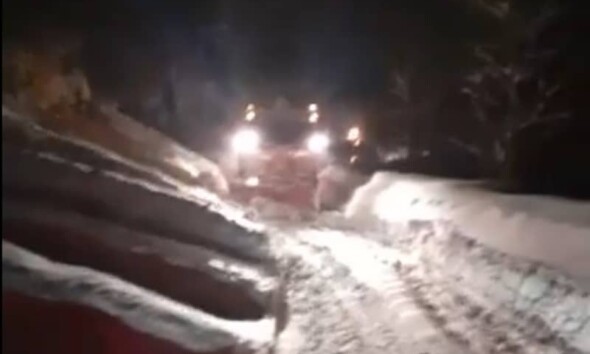 VIDEO: DN75 blocat de o avalanșă în Apuseni, între Arieșeni și Ștei. Au intervenit drumarii, cu utilaje