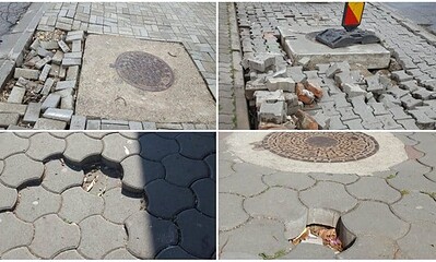 La Alba Iulia, pavelele din jurul canalizărilor cedează sub greutatea primelor de la Apa CTTA....