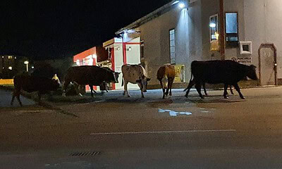 O cireadă de vaci a fost fotografiată duminică seară la Alba Iulia, în zona Alba...