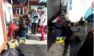 Persoanele accidentate pe pârtiile de schi de la Arieșeni primesc primul ajutor afară, pe zăpadă,...