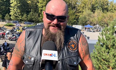Într-o mare de motocicliști cu pahare de bere în mână, la peste 30 de grade,...