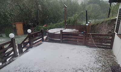 A plouat cu gheață, într-o localitate din Alba, vineri, 9 august în jurul orei 16.00. ...