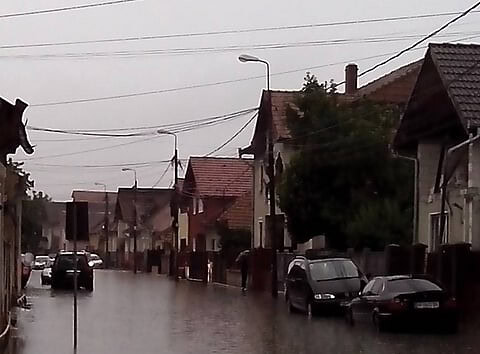 FOTO: INUNDAŢII pe o stradă din Alba Iulia, după ploi torenţiale. Intervenţii ale pompieriilor şi Apa CTTA