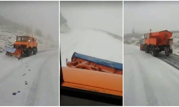 Drumarii au intervenit duminică pe Transfăgăraşan, unde a nins, la Bâlea Lac înregistrându-se temperaturi negative. „Se îngroaşă gluma... şi stratul de zăpadă pe Transfăgărăşan. Colegii noştri acţionează de azi dimineaţă...