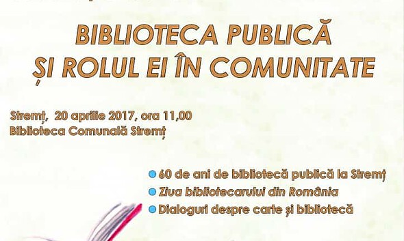 La Biblioteca Comunală Stremț va avea loc joi, 20 aprilie, colocviul „Biblioteca publică și rolul ei în comunitate”. Evenimentul se va desfășura începând cu ora 11.00 și este organizat de...