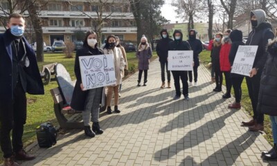 Studenții din Alba Iulia s-au adunat vineri, 12 februarie, în fața Prefecturii județului Alba, împotriva...