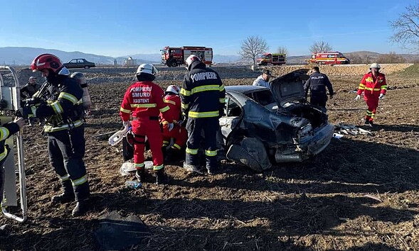 Accident rutier la Teleac: O persoană a fost extrasă dintr-un autoturism. Ce spun pompierii din Alba
