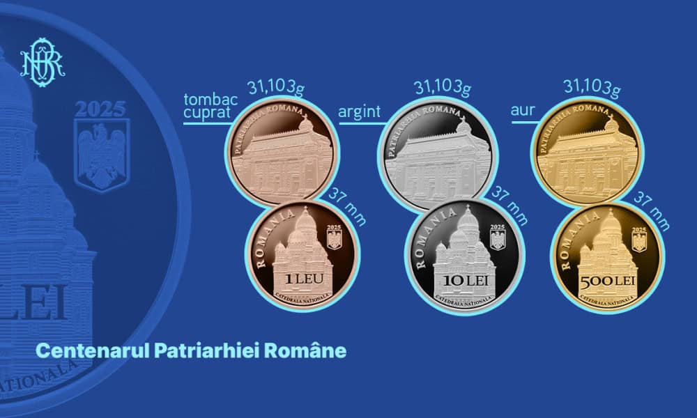 FOTO: BNR lansează monede din aur, argint și tombac cuprat, cu tema Centenarul Patriarhiei Române. La ce preț se pot achiziționa
