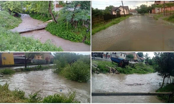 VIDEO: Canale navigabile de „mobilitate urbană” la Alba Iulia, după o ploaie torențială. Probleme și în alte zone din județ