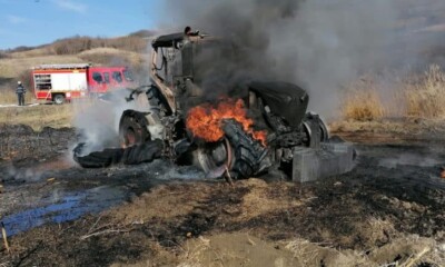 Un tractor a luat foc duminică, în jurul orei 15.45, pe un teren de pe...