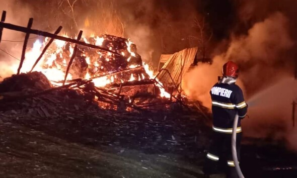 INCENDIU în satul Trâmpoiele: Un grajd plin cu furaje a luat foc în timpul nopții