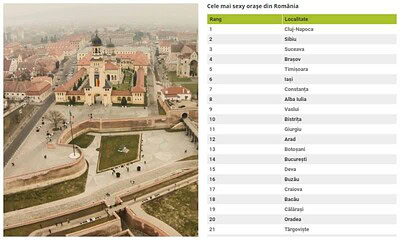 Alba Iulia în top zece orașe...sexy din România. Cetate, Unirea, Mihai, sunt cele mai menționate...