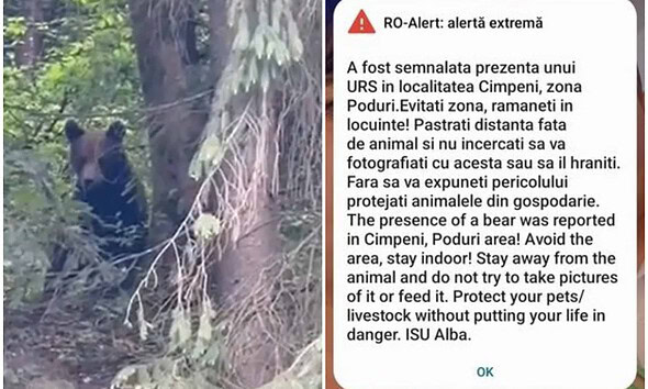O nouă avertizare prin sistemul RO-Alert, care semnealează prezența unui urs în orașul Câmpeni, a fost emisă sâmbătă dimineața de autorități. Animalul a fost văzut în zona Poduri, în jurul...