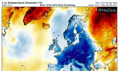 Un val de aer Arctic extrem de rece și rar pentru luna mai va pune stăpânire, în acest weekend, pe regiuni extinse din Europa. Temperaturile...